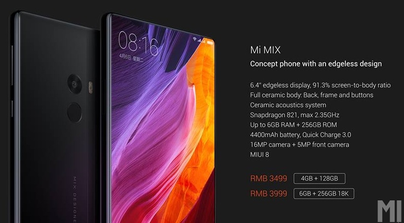 versiyalı Mİ Mix 515$, 6 GB RAM və 256 GB daxili yaddaş versiyalı Mi Mix isə 590$