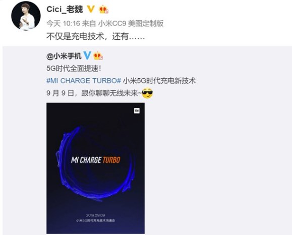Bununla yanaşı şirkət bugün həmçinin Mi Charge Turbo adlı yeni naqilsiz sürətli enerji yığma texnologiyasını da təqdim etməlidir. Məlumata əsasən şirkət ilk öncə 300.000 smartfonu satışa çıxardacaq. Daha sonra smartfona tələbatın artacağı halda şirkət smartfon istehsalını davam etdirəcək. Məlumata əsasən smartfon Snapdragon 855 Plus prosessoru, Snapdragon X50 5G çipi, 12 GB RAM, 512 GB daxili yaddaş həcmi və 4000 mAh enerji tutumlu batareya ilə təchiz olunacaq. Modemin və batareyanın böyük ölçüsü səbəbilə smartfon adi Mi9 modelindən bir qədər qalın olacaq.
