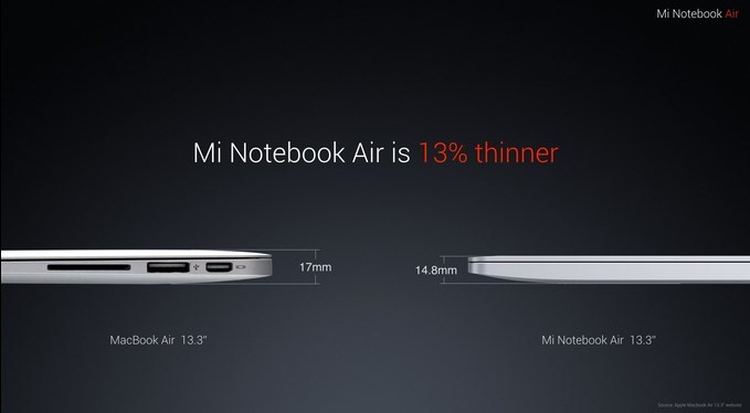 14.8 mm-dir. Vizual cəhətdən Xiaomi-nin məhsulu MacBook-dan çox da fərqlənmir.