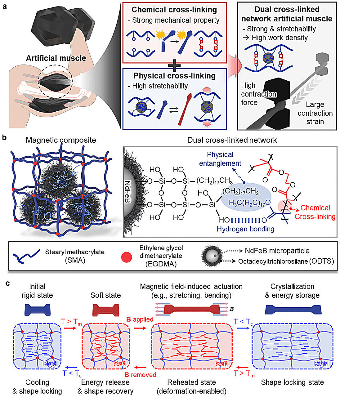 Ulsan Milli Elm və Texnologiya İnstitutunun (UNIST) tədqiqatçıları eyni anda həm sərt, həm də elastik ola bilən yeni növ süni əzələ növü hazırlayıblar. Onun çəkisi cəmi 1.25 qramdır, lakin öz çəkisindən 4000 dəfə artıq, yəni 5 kq yük qaldıra bilir. Bu yenilik yumşaq robot texnologiyası, protezləşdirmə və taxıla bilən cihazlar üçün yeni imkanlar aça bilər. Süni əzələlərin yaradılması mühəndislikdə ən mürəkkəb problemlərdən biri olaraq qalır. Adətən belə materiallar ya yumşaq və elastik, amma zəif, ya da möhkəm və davamlı, amma qeyri-elastik olur. Bu, texnologiyanın robotlarda və digər interfeyslərdə - yəni həm güc, həm də incə hərəkət tələb edən sahələrdə - tətbiqini məhdudlaşdırır.