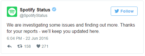 Bu gün stream (axın) şirkətləri üçün heç də uğurlu gün olmadı. Bir neçə saat əvvəl youtube serverlərində müvvəqəti problemlər yaşanandan sonra qısa müddət ərzində youtube öz fəaliyyətini bərpa etməyi bacarmışdı. Bu hadisədən sonra təxminən 1 saat əvvəl Spotify istifadəçiləri hesabları ilə bağlı problemlər yaşamağa başlayıb. The Next Web-ə daxil olan məlumatlarda göstərilir ki, istifadəçilər bu stream platformasından bir müddət istifadə edə bilməyiblər. Spotify rəsmi twitter səhifəsində yerləşdirdiyi məlumatda yayılan xəbərləri təsdiqləyib. Problem qısa müddət ərzində həll olunub.